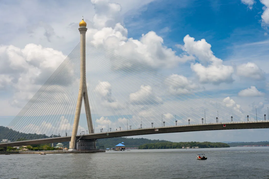 As you explore, you’ll enjoy great views of the Raja Isteri Pengiran Anak Hajah Saleha Bridge (Google Maps), the second-longest single-pylon cable-stayed bridge in the world, spanning a total of 622 meters.
