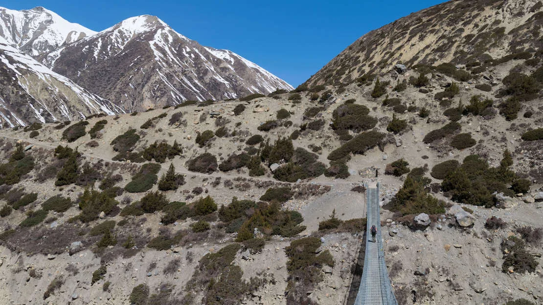 Summer is the monsoon season in Nepal. Especially at low altitudes, it can get really hot, but the higher you go, the more pleasant the temperatures become. Much of the region sees a good amount of rain, with the presence of leeches and mosquitoes. However, there is a huge difference between the south-facing part of the massif (Base Camp and Poon Hill), where it really rains a lot, and the north-facing part (Manang, Upper Pisang, Muktinath), where the rainfall is definitely less.