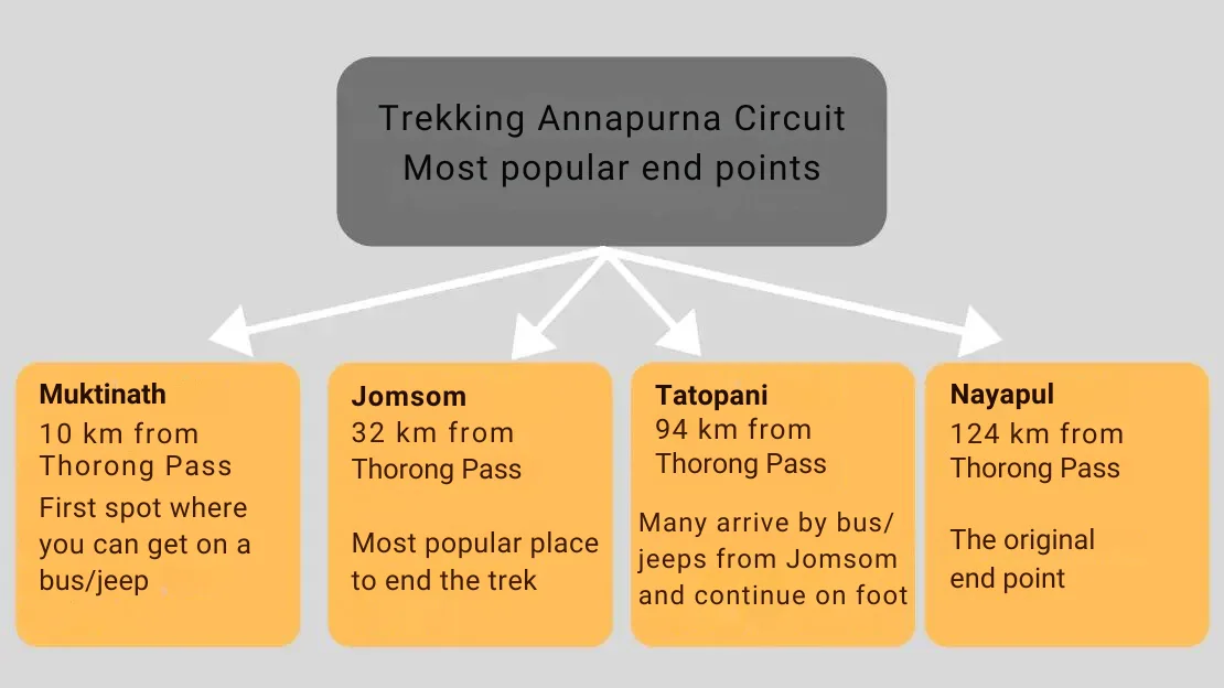 As with the starting points, there are several options for the ending points as well once over Thorong Pass. As mentioned earlier, we opted for Muktinath. From there, we then took a bus to Tatopani and started the trek to Poon Hill. Many people, once they get to Muktinath, go straight back to Pokhara.