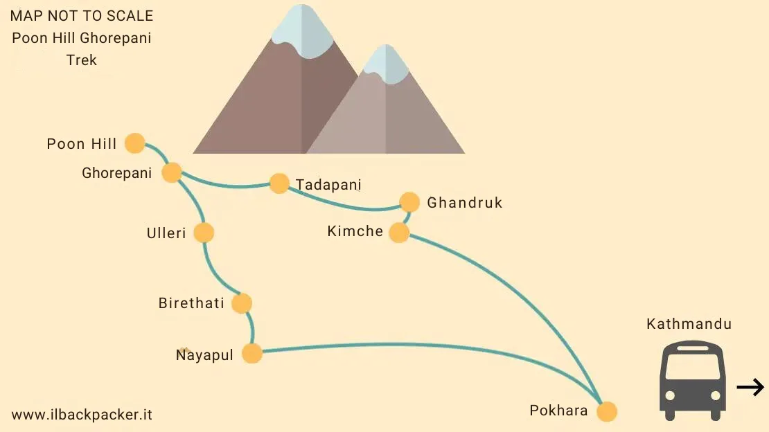 Day by day itinerary and recommended stops for Trekking in Poon Hill GhorepaniDay 1 Bus Pokhara – Nayapul (2 and a quarter hours, 40km) / Walk Nayapul – Ulleri (4 hours, 12km)